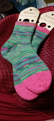 靴下完成( ̄ー ̄)ニヤリピンクたりるかなぁとおもったら足りなかったちょっと違う色(θ‿θ)夕顔用に干すや つかってき···