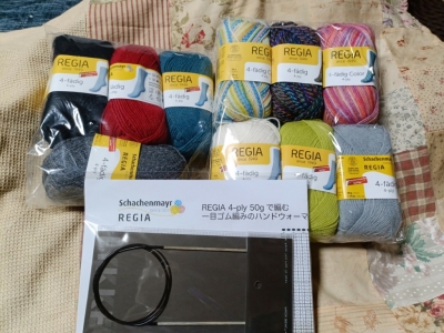 毛糸を買いましたテライさんのREGIA50g×10玉アソート 『秋のほっこり毛糸』セット福袋【LYKKE輪針付】編み針もついて5500円とてもお得なにより単色が···